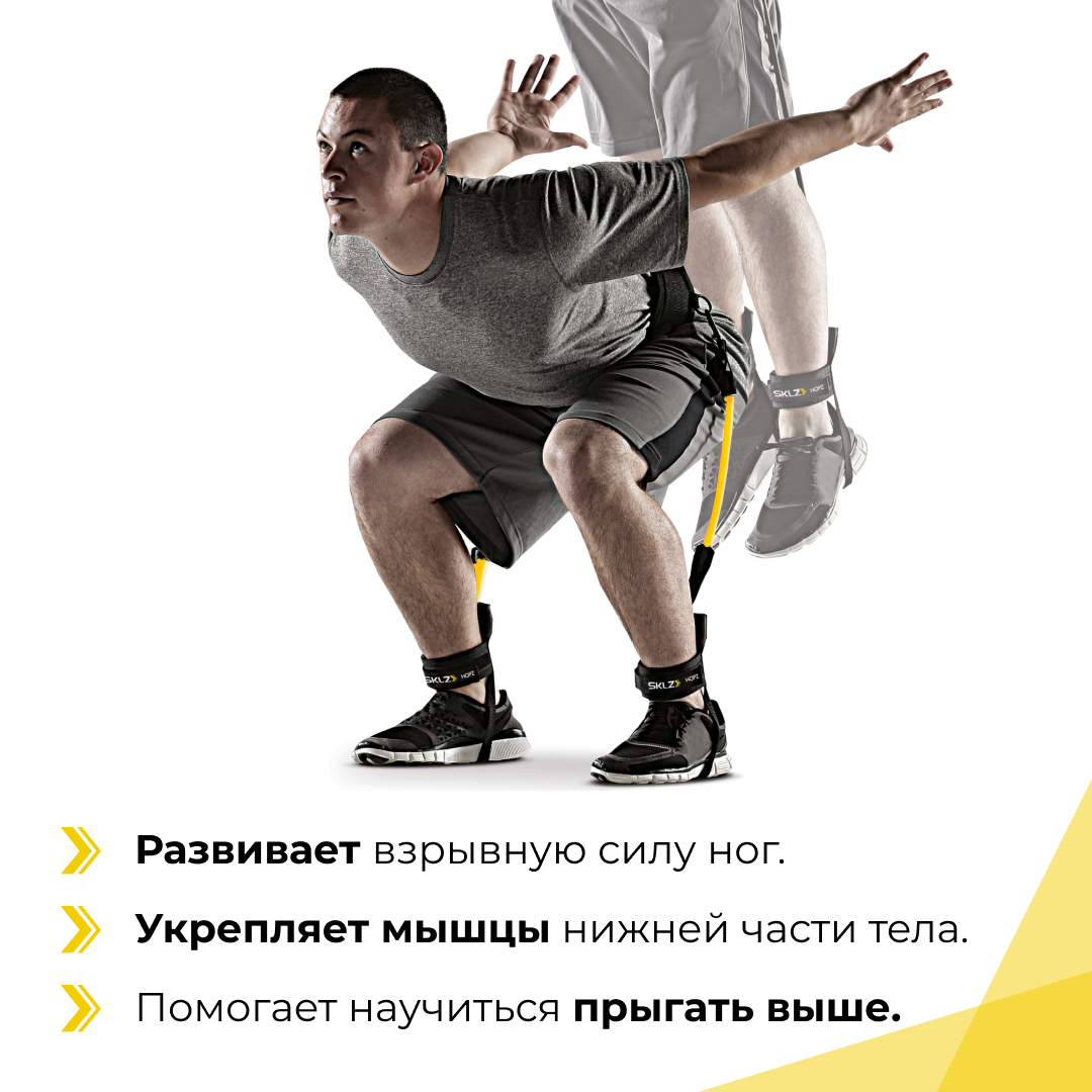 Тренажер создан для увеличения взрывной силы ног и укрепления основных мышц нижней части тела, чтобы максимально увеличить способность к прыжкам. Возможность перемещать кабель на поясе для тренировки конкретных мышц. Быстрое изменение уровня сопротивления кабеля с запатентованным замком Slide-Lock на поясе и ножными лямками. Регулируемый пояс с боковой прокладкой удобно сидит и помогает правильно прикрепить кабель. Прочные ножные лямки надежно держат кабели на месте.