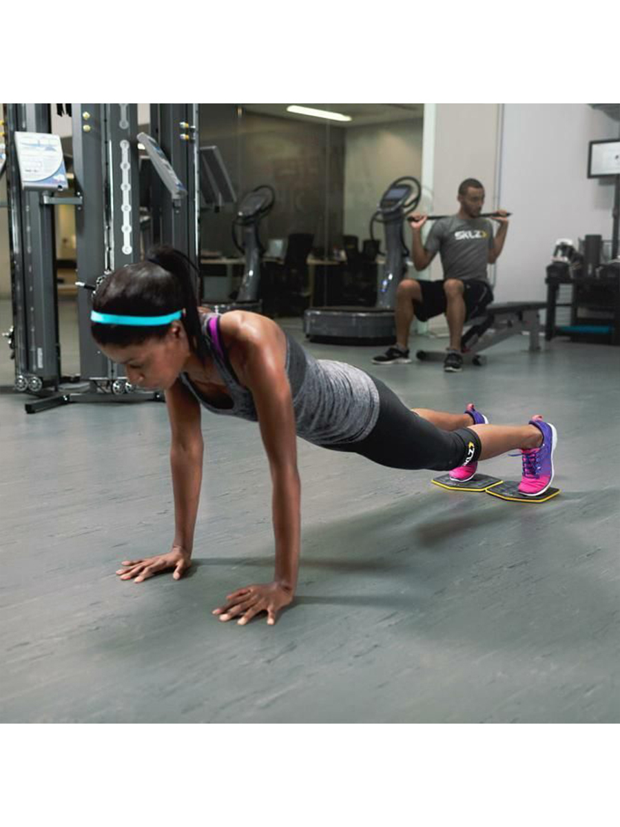 Новый уровень тренировок с дисками скольжения от Sklz! Тренажер представляет собой две пластины с эргономичным протектором. Положив на них руки или ноги, Вы совершаете скользящие движения по поверхности стены или пола в разнообразных направлениях. Затрачиваемое усилие при выполнении упражнений с дисками очень велико, в результате Ваши плечи, торс и бедра работают эффективнее, чем прежде, улучшается гибкость. Слайды для фитнеса имеют низкий коэффициент трения, поэтому плавно скользят по любой поверхности. Диски можно скреплять между собой, что разнообразит глайдинг.