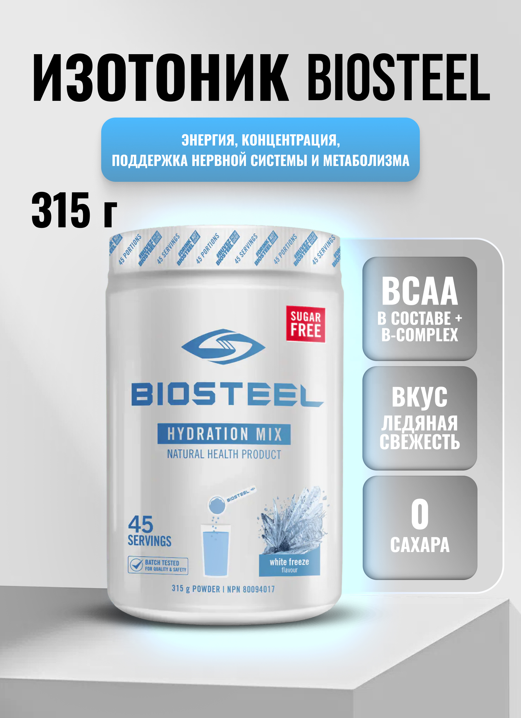Натуральный спортивный напиток BioSteel для быстрого восполнения запаса электролитов в перерывах и во время умеренной и высокой физической активности и нагрузки.