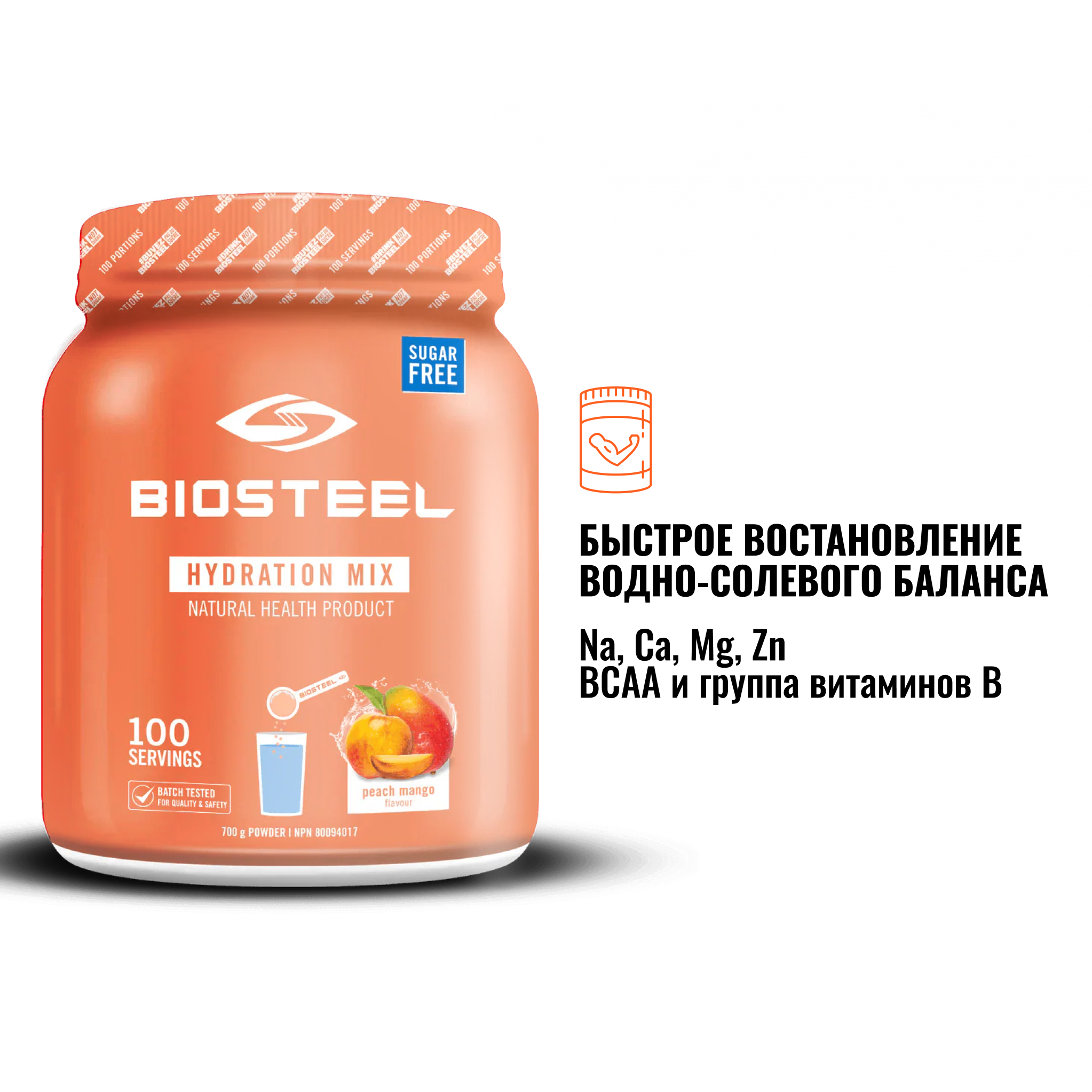 Натуральный спортивный напиток BioSteel для быстрого восполнения запаса электролитов в перерывах и во время умеренной и высокой физической активности и нагрузки.