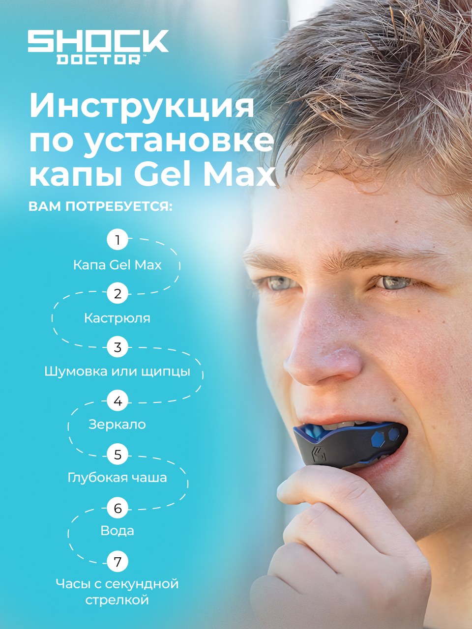 Капа спортивная защитная для рта, детская до 10 лет, ShockDoctor Gel Max Trans / Clear Youth