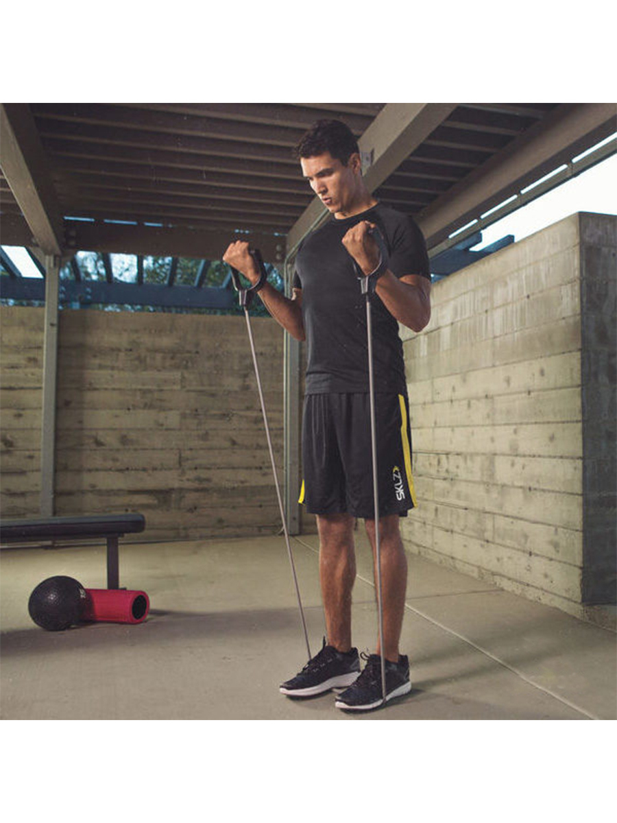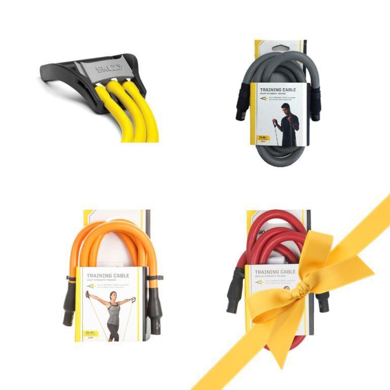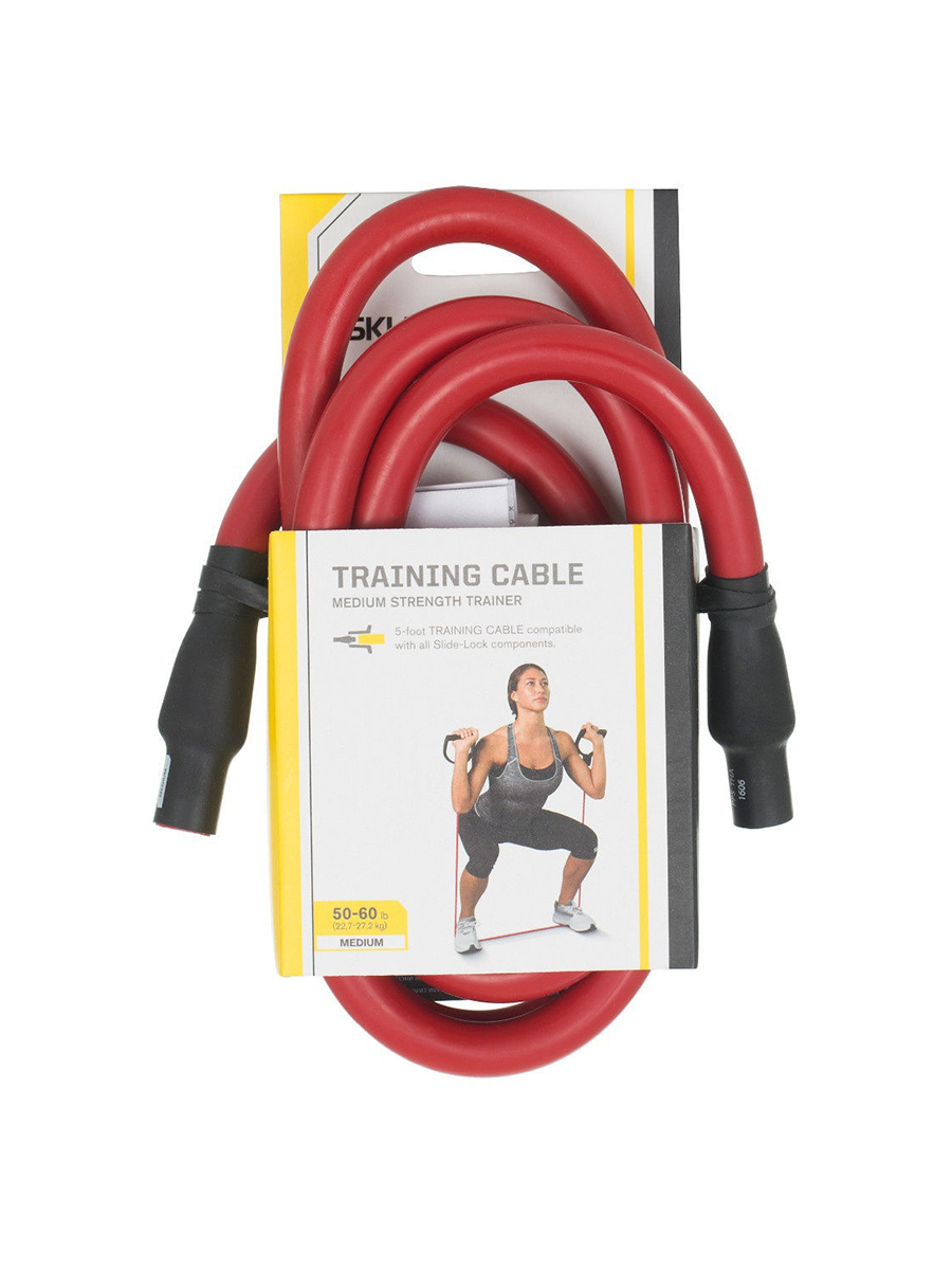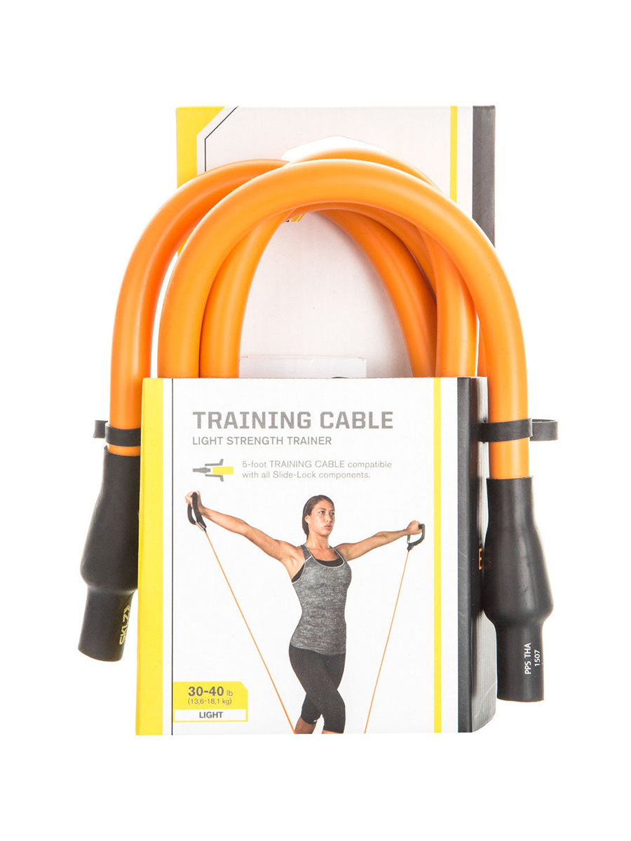 - Тренировочные кабели из прочного латекса Training Cable с разной степенью сопротивления — легкой, средней и тяжелой. Длина каждого троса — 152 см. В отличие от большинства аналогов, Training Cable не теряют упругость и не рвутся даже при регулярных интенсивных тренировках.