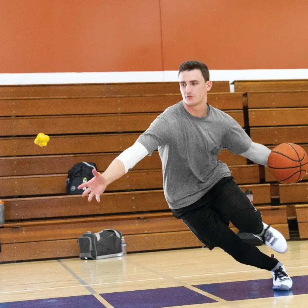 Sklz Reaction Ball – это мяч с необычной бугристой поверхностью, благодаря чему он отскакивает от стен и пола в непредсказуемых направлениях. Задача игрока успеть сориентироваться и поймать его. Можно усложнить упражнения, добавив координационные конусы или барьеры. И тренировка превращается в увлекательную игру.