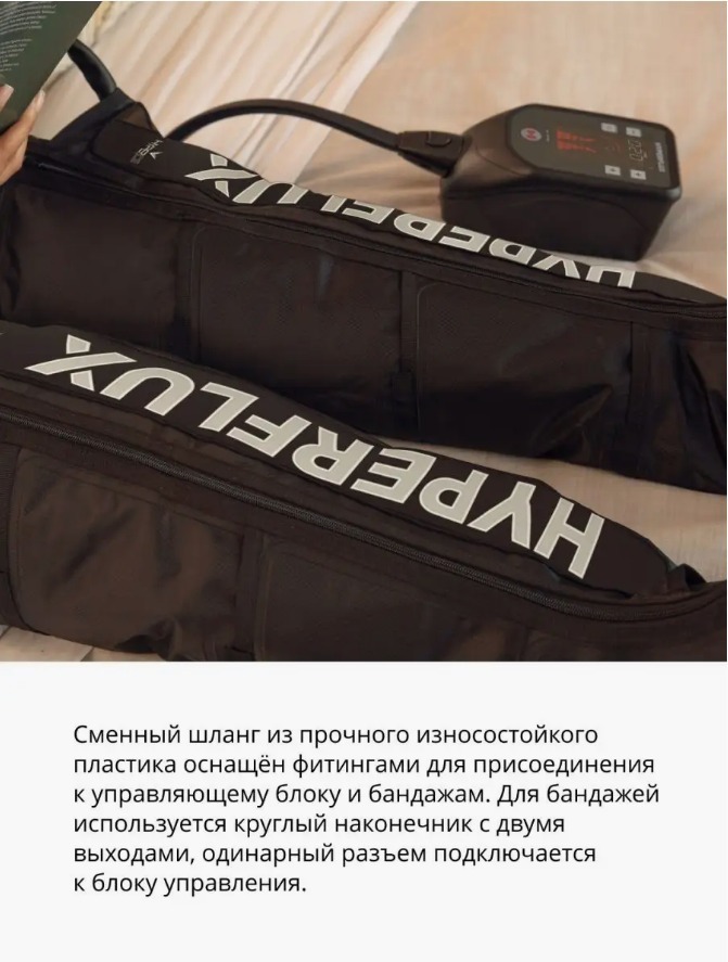 Hyperflux Hose — это дополнительный, сменный шланг для подключения одного или двух бандажей к системе прессотерапии Hyperice Hyperflux. Hyperflux — передовое компрессионное устройство от Hyperice/Normatec.