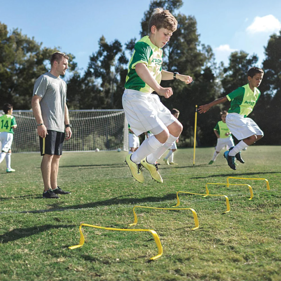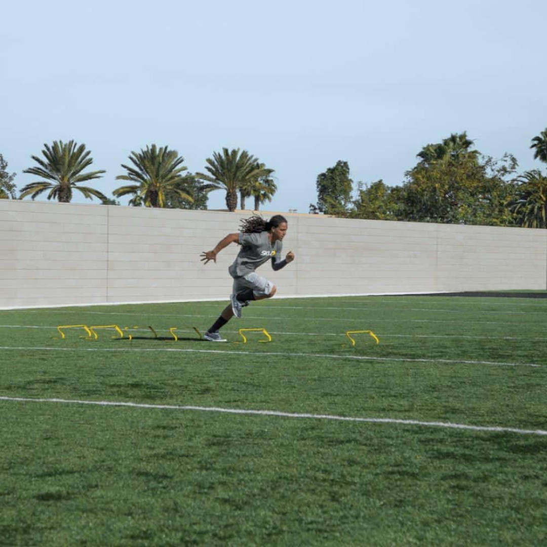 Быстрые и выносливые ноги, высокий подъем колена, чувство границ являются основополагающими навыками для легкоатлета. Чтобы быть на пике возможностей, необходимо на практике использовать новейшие разработки спортивной техники. Тренировочные барьеры — один из таких тренажеров. Они повышают скорость бега и ловкость ног, развивает координацию и улучшает способность быстрого маневрирования. Тренируйтесь с координационной дорожкой 6X HURDLES и будьте впереди соперников!