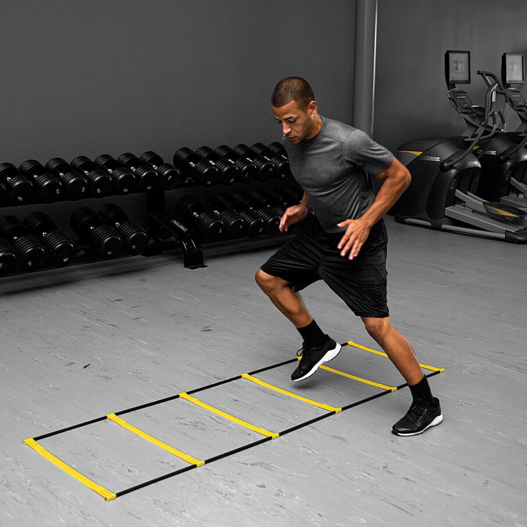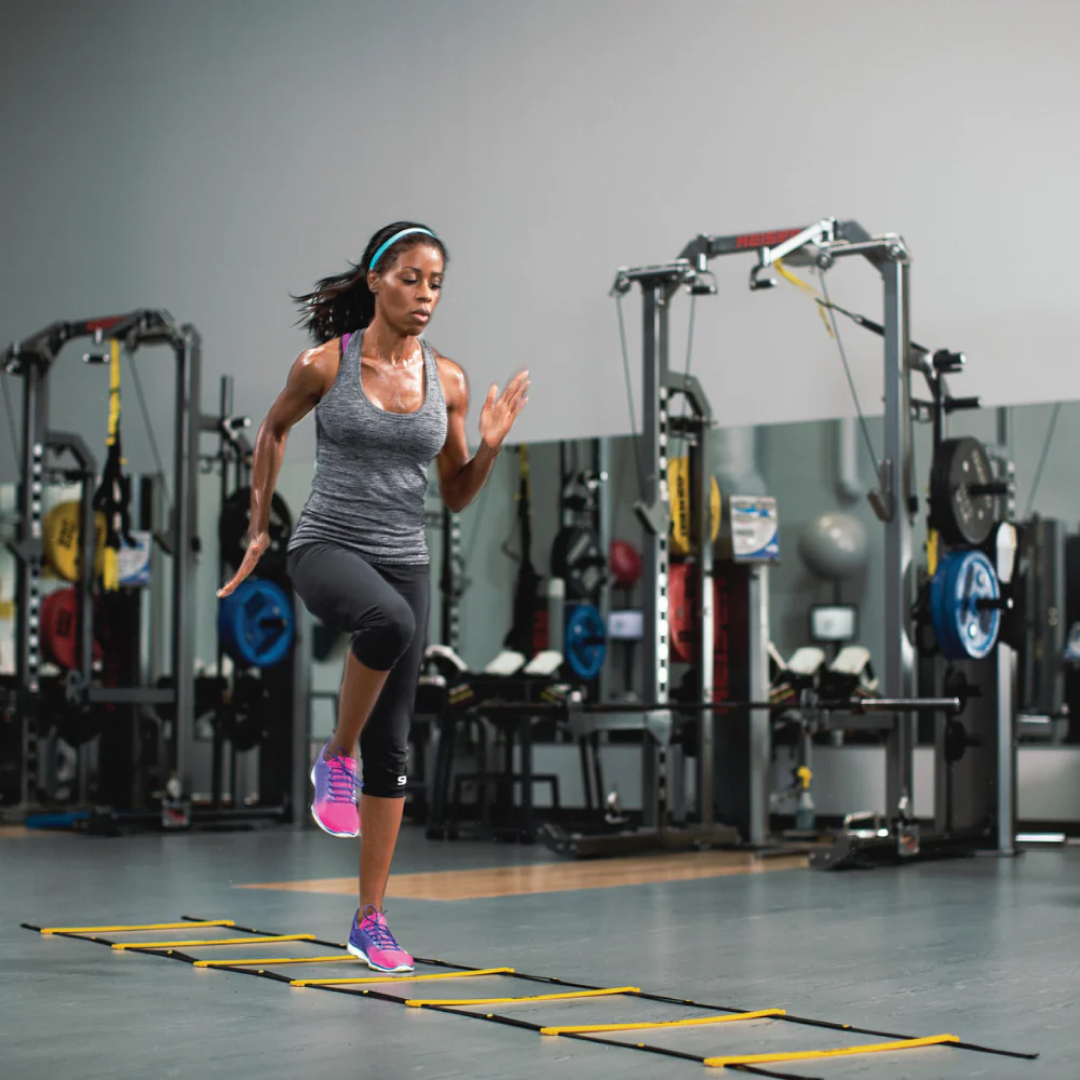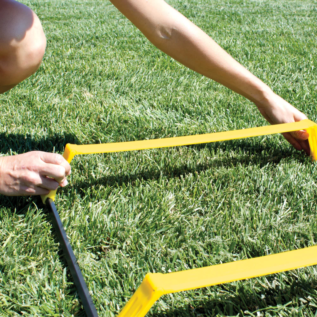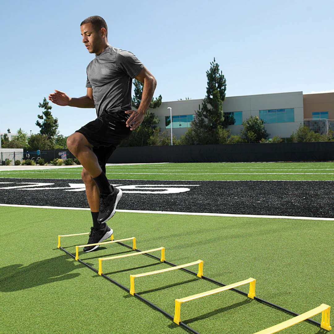 В тренажере Elevation Ladder объединены 2 популярных тренажера SKLZ: координационная дорожка и скоростные барьеры. Теперь вы можете тренироваться с поднятыми перекладинами лестницами, либо опускать их. Как дорожка - тренажер развивает быстроту атлета, а как барьеры - работает над скоростью и маневренностью. Тренажер перестраивается из режима дорожки в режим барьеров за несколько секунд.