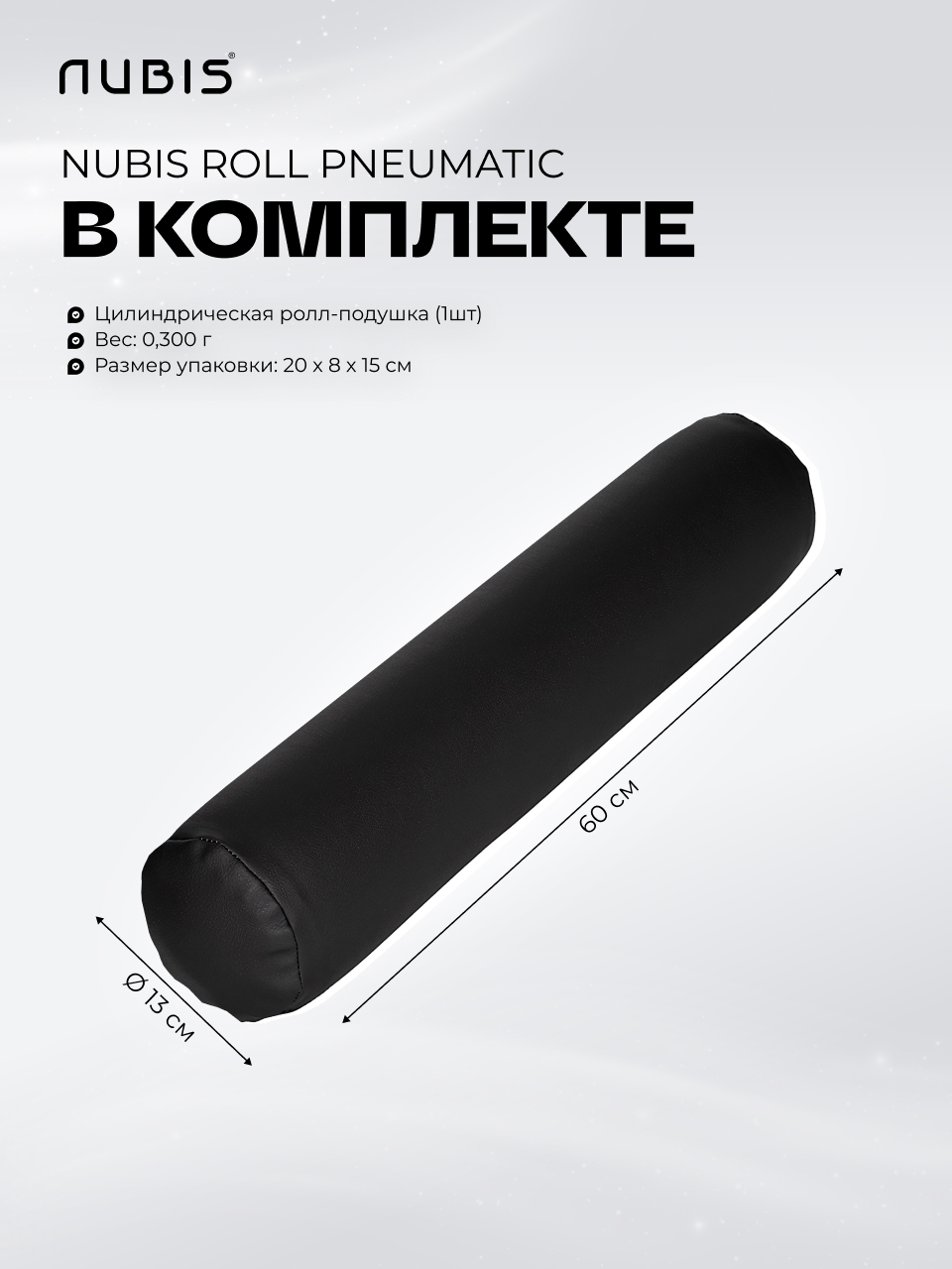 Универсальная цилиндрическая ролл-подушка под шею, ноги, суставы. Подходит для всех столов Nubis. Помещается в фирменную сумку-рюкзак Nubis.